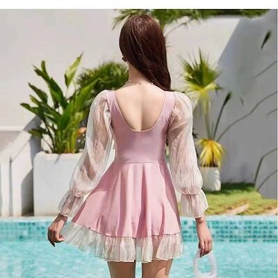 ピンクリボン無地水着水着ビーチスパ水着レディースワンピースワンピース水着2025新作春秋冬スパ休日水着