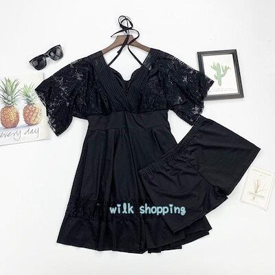 ぽっちゃり 水着 ワンピース 体型カバー 大きいサイズ レディース 半袖 露出控えめ オールインワン ママ フレア 無地 温泉水着 海水浴