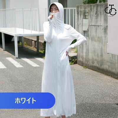 無地 ロング丈 ラッシュガード レディース パーカー ワンピース 大きい 長袖 指穴 UVカット 紫外線対策 体型カバー 水着 アウトドア 日焼け防止