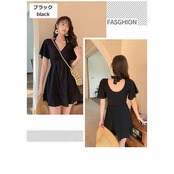 【Primepic】【急速出荷】水着 レディース ワンピース ワンピースタイプ 2way 体型カバー 着痩せ 肩出し フリル 韓国風 20代 30代 40代 ママ 無地 可愛い おしゃれ