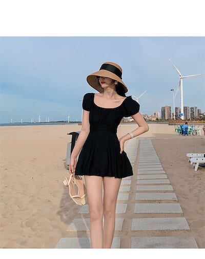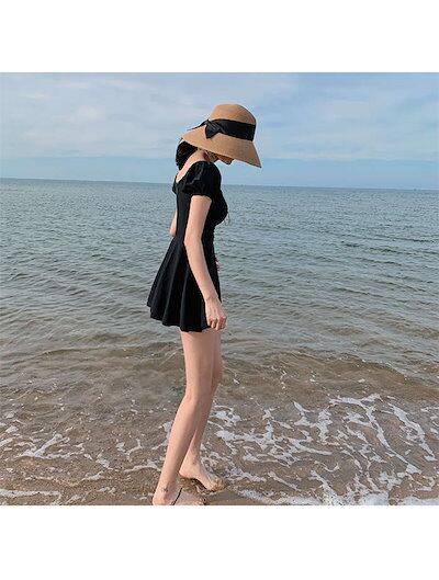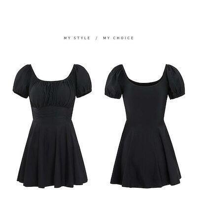 水着 レディース ワンピース 体型カバー 大きいサイズ かわいい おしゃれ 無地 黒 半袖 露出控えめ ビキニ スカート オールインワン ママ水着 オトナ女子 無地 セクシー パッド付き 小胸 バスト