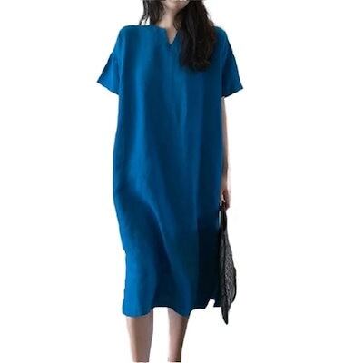 2024 夏 おとなの ワンピースリネン混ワンピース レディース マキシ 半袖 ロング 大きいサイズ リネン Vネック おしゃれ 可愛い ブラック新作 旅行 無地 韓国 30代 40代 水着 ビーチツ