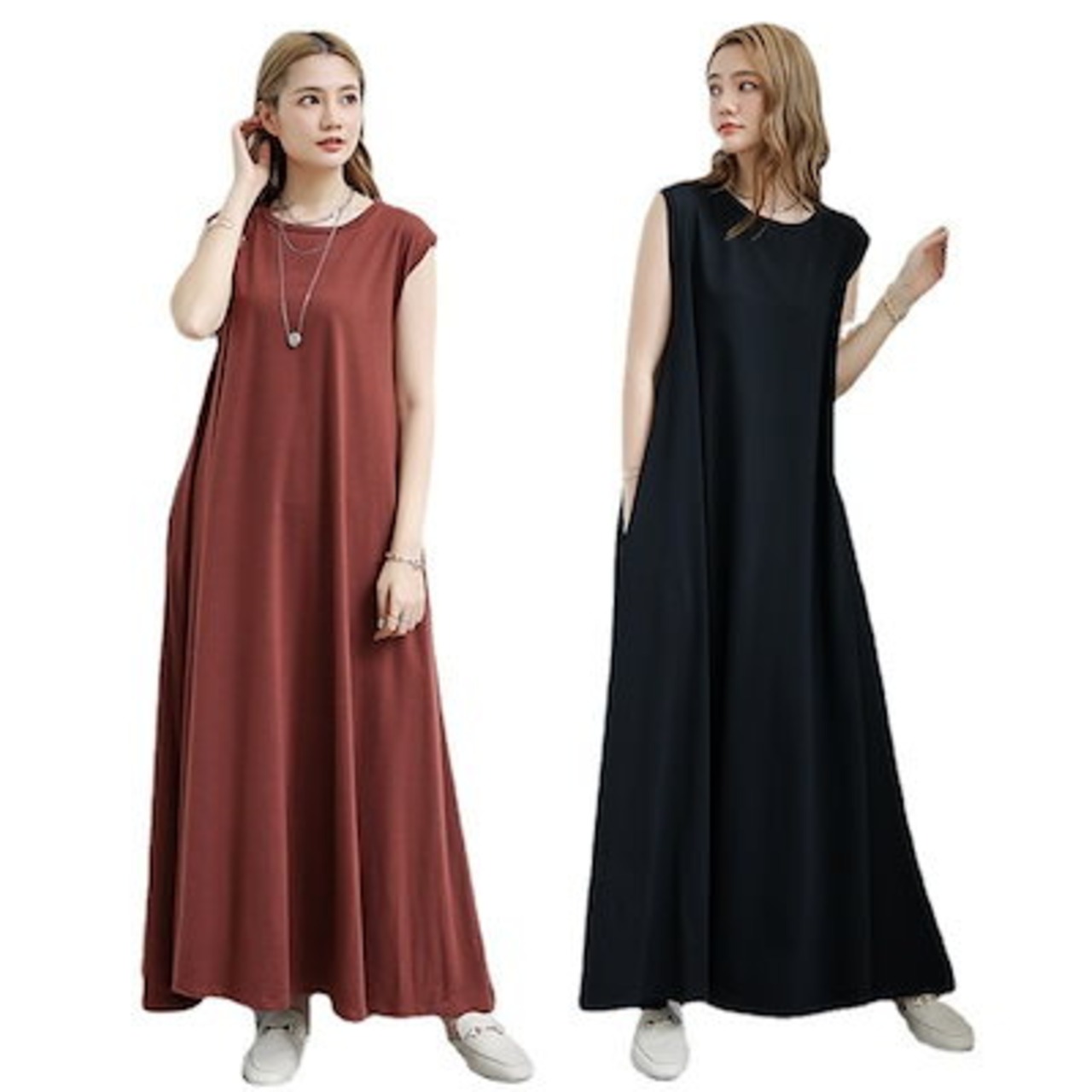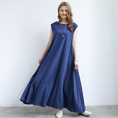 6色 2Types ワンピース レディース きれいめ マキシワンピース 春夏 无袖 半袖 ノースリープ ワンピース 無地 ロング丈スカート ひざ下 オシャレ カジュアル ゆったり 体型カバ 水着 ビー