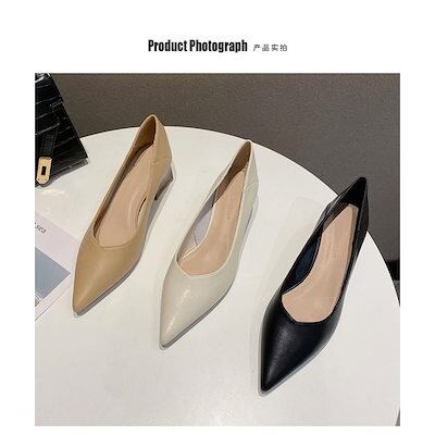 スタイルアップ!ヒールパンプス 本革 走れるパンプス ローヒール レディース ポインテッドトゥパンプス 通勤走れる 太ヒール 靴 無地 パンプス ポインテッドトゥ orange