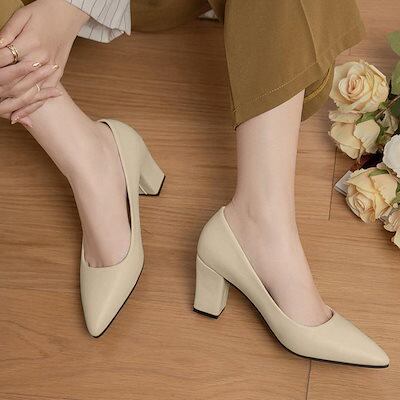スタイルアップ!ヒールパンプス ポインテッドトゥ パンプス レディース orange