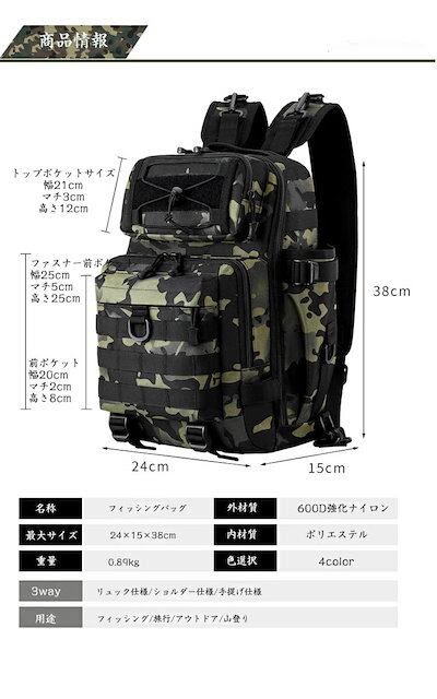 3way ランガンバッグ フィッシングバッグ アウトドアカバン バッグ お釣り リュック仕様 ショルダー仕様 手提げ仕様 ナイロン素材 耐久性 大容量 収納力 防水 スポーツ用品 たっぷり 迷彩カー