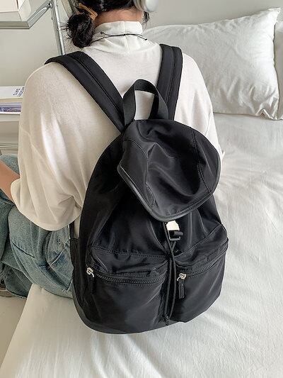 リュックブラックスポーツスタイルシンプルナイロンバックパックレディースファッション新しい防水マルチポケット大学生旅行バックパック