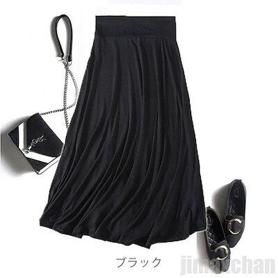 気楽 スカート レディース ボトムス ロング ミモレ丈スカート ロングスカート Aライン ハイウエスト ウエストゴム フレアスカート Aラインスカート カジュアル 春夏 通勤通学