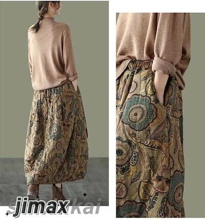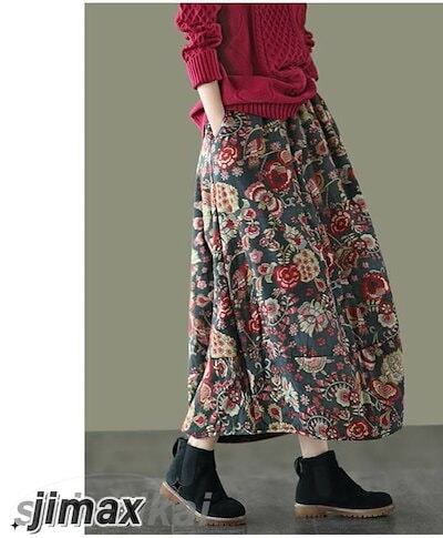 スカート ロングスカート レディース コクーンスカート 花柄 フレア 中綿 ボトムス 大きいサイズ 体型カバー 冬 ウエストゴム ロング丈 秋冬 総柄 秋冬 40代 50代 60代 ホワイトデー