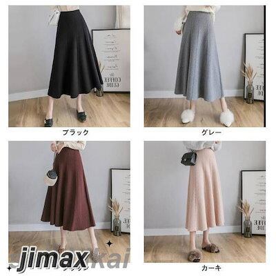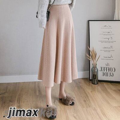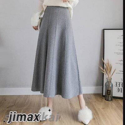 フレアスカート レディース ニットスカート ロングスカート リブニット 無地 Aライン カジュアル フリーサイズ ミモレ丈 ゴムウエスト 秋冬 プレゼント