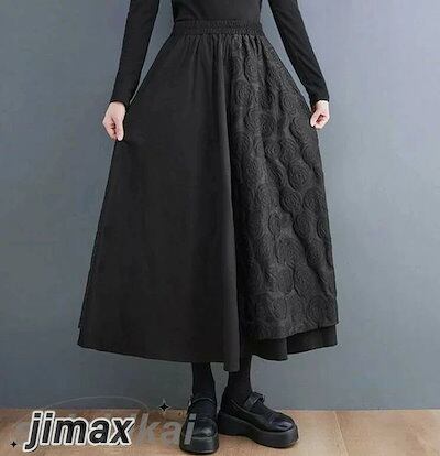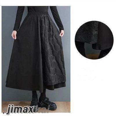 ロングスカート レディース スカート 黒 ウエストゴム フレアスカート 二重裾 刺繍 春 秋 冬 ロング丈スカート 秋冬 きれいめ 大人可愛い ホワイトデー