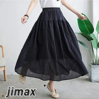 スカート 秋 ロング ベージュ コットン ロングスカート 夏 フレア ウエストゴム ミモレ丈 スカート 夏 レディース Aライン ハイウェスト ゴム きれいめ フェミニン オフィス 大人 通勤 カジュ