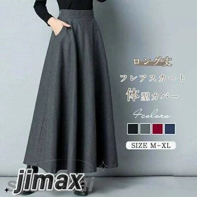 ロングスカート 春 レディース 秋 冬 ロング フレアスカート レディース スカート マキシ丈 大きいサイズ 秋冬 ロング丈 フレア 無地 ファッション マキシスカート ポケット付き ウエストマーク