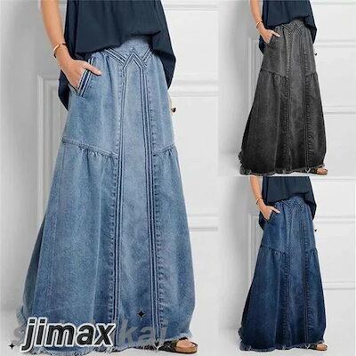 デニムスカート ロング 冬 ボトムス 秋冬 スカート ロングスカート レディース デニム ロング スカート ウエストゴム 大人 ボトムス カジュアル おしゃれ 体型カバー ホワイトデー
