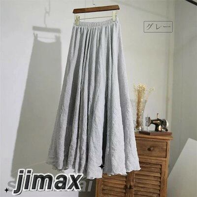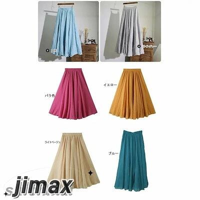 マキシスカート レディース フレア 綿麻混 ロングスカート ゴムウエスト 無地 リネン風 ボトムス スカート 大きいサイズ 着痩せ 夏 ホワイトデー