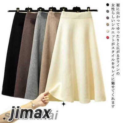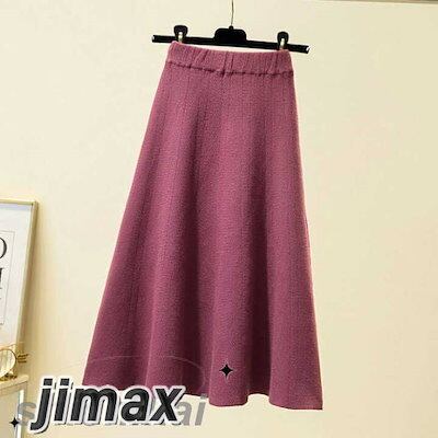 ロングスカート 50代 ミモレスカート ニットスカート 厚手 サーキュラースカート スカート ウエストゴム フレアスカート レディース 冬スカート 30代 40代 Aライン