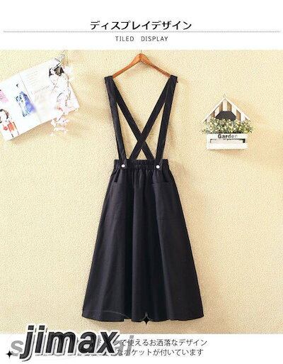 リネンスカート レディース ジャンパースカート 麻生地 綿麻 リネン混 サロペット マキシスカート ロングスカート フレアスカート ウエストゴム 無地 ポケット付き オーバーオール オールインワン お