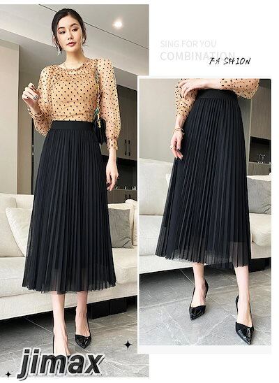 プリーツスカート ロングスカート スカート 夏 レディース Aライン ハイウェスト ゴム きれいめ フェミニン オフィス 大人 通勤 カジュアル ママ 春 秋 ロング プリーツ マキシ スカート ふん
