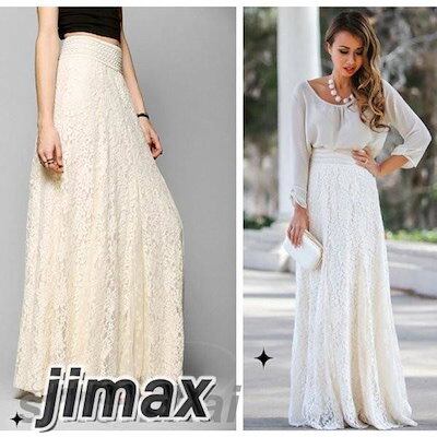 スカート レディース マキシ丈 透かし彫り レース ボトムス ハイウエスト 花柄 裏地付き ゴムウエスト 超ロング パーティー プレゼント