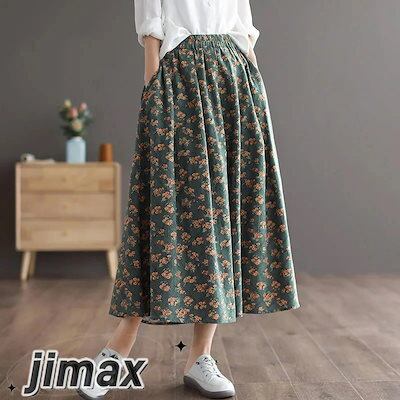 花柄 マキシスカート 春夏 スカート ミモレ丈 ポケット付き 花柄スカート チェック 綿麻 ロングスカート フレア ウエストゴム レディース Aライン ハイウェスト ゴム きれいめ フェミニン オフィ