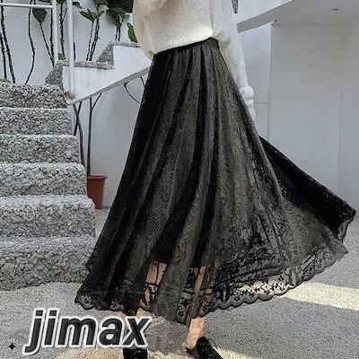 スカート ロングスカート レース 裏地付き フレアスカート レディース ロング丈 マキシ丈 Aライン ウエストゴム ボトムス 透け感 女の子 ホワイト 白 ブラック 黒 2023春夏