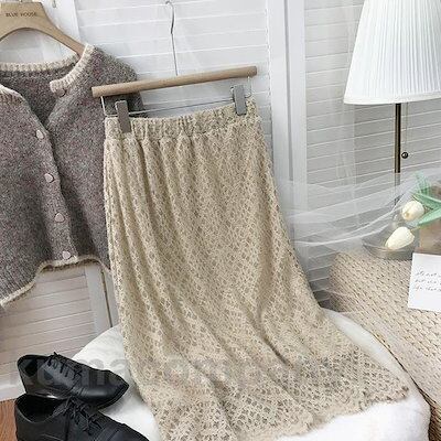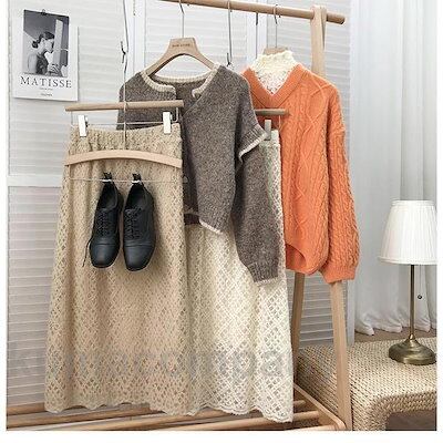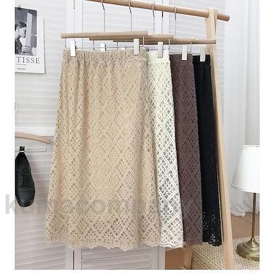 レーススカート ロング丈 レディース スカート Aラインレーススカート ロングスカート 秋冬 Aラインスカート 裏地付き ウエストゴム レトロ 通勤