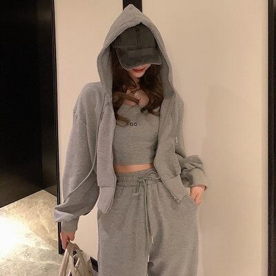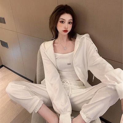 2025 春 新作 スウェット上下セット ファスナー キャミソール 長袖 パーカー 3点セット セットアップ レディースファッション