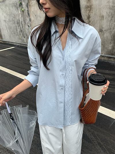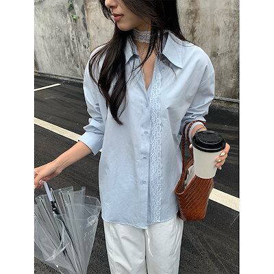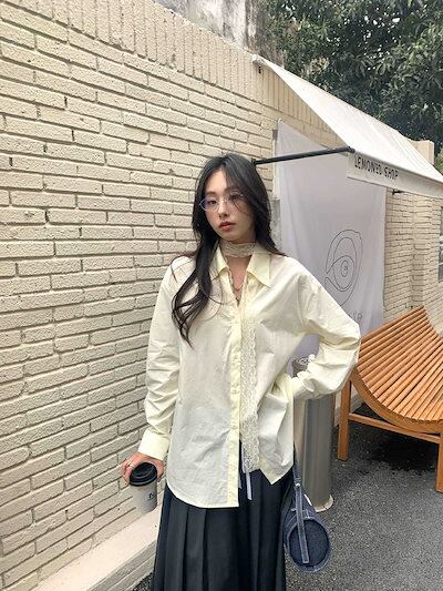 2025 春夏 シャツ レース 長袖 ブラウス レディース トップス 韓国ファッション