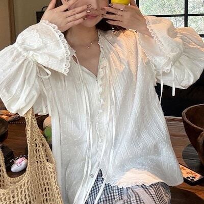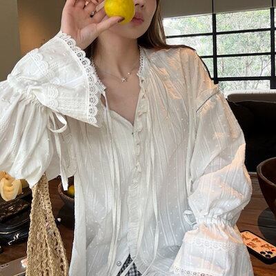 2025 春夏 シャツ レース ブラウス レディース トップス 韓国ファッション