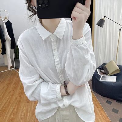 2025 春夏 シャツ レース 長袖 レトロ ブラウス レディース トップス 韓国ファッション