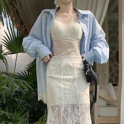 2025 春夏 シャツ レース長袖 カジュアル レース ブラウス レディース トップス 韓国ファッション