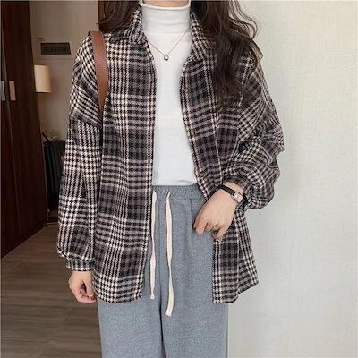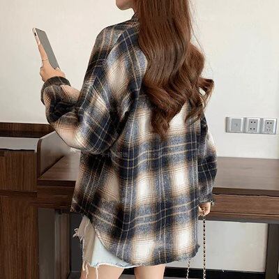 2025 春 夏 シャツ レディース ブラウス チェック 厚手 長袖 シャツ トップス 韓国ファッション