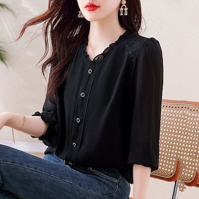2025 春 夏 シャツ レディース ブラウス OL 通勤 シアーシャツ 体型カバー ロング 長袖 トップス 韓国ファッション