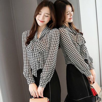 2025 春 夏 シャツ レディース ブラウス リボンvネック シフォン 通勤 シャツ 30代 トップス 韓国ファッション