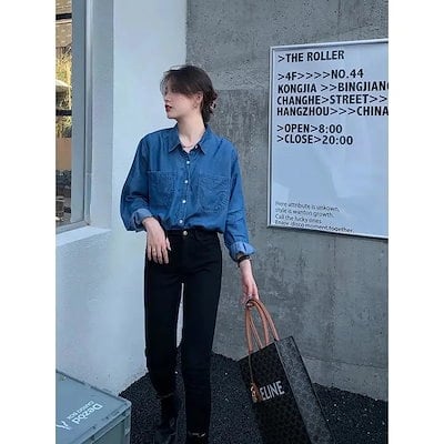 2025 春 夏 シャツ レディース ブラウス デニムシャツ 長袖 シャツ トップス 韓国ファッション