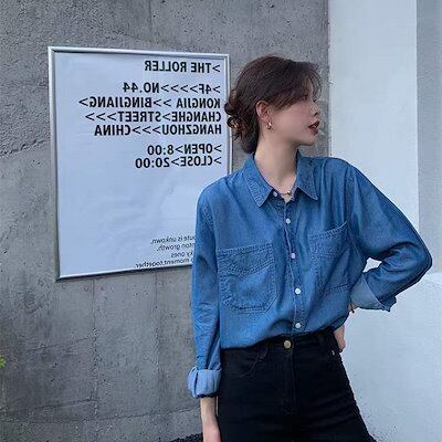 2025 春 夏 シャツ レディース ブラウス デニムシャツ 長袖デニム トップス 韓国ファッション