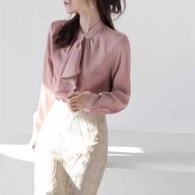2025 春 夏 シャツ レディース ブラウス シャツ 通勤リボン 長袖 トップス 韓国ファッション