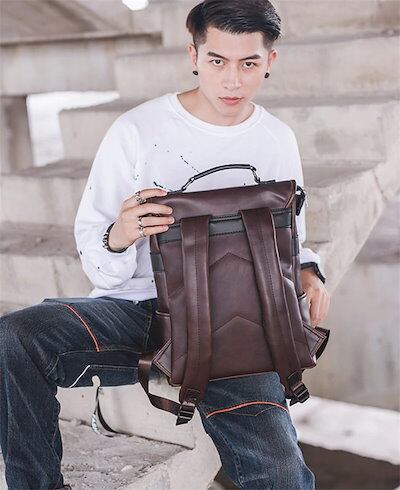 Fashions発売韓国ファッション大人気おしゃれな大容量個性カレッジ風PUレザーデイバッグリュックサックメンズ