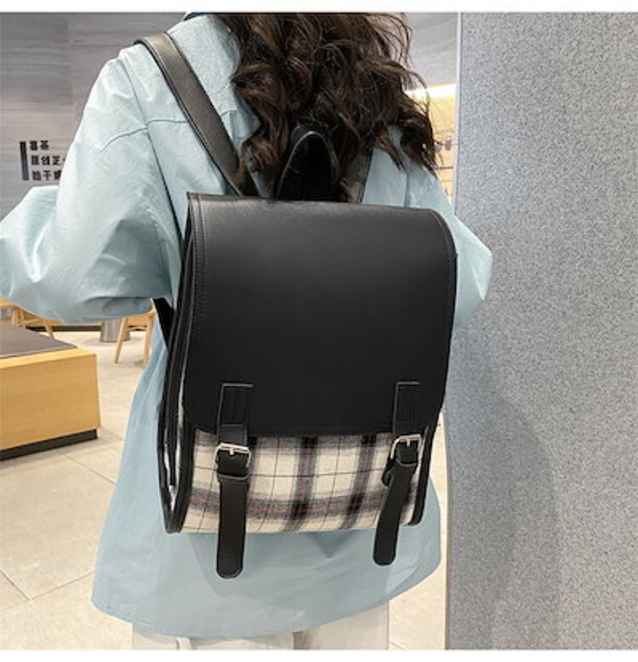 2024 バックパック 今すぐ欲しい バックパック韓国お洒落人気リンジ黒&白チェック柄INS英?風フラップリュック気質手提げ2Wayバック