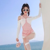 水着 レディース ラッシュガード 量産型 地雷系 トリプルリボンワンピース水着 パッド付き 韓国風 体型カバー 日焼け防止 20代 30代 40代水着セット ビキニ パレオ 大きいサイズ
