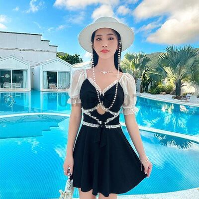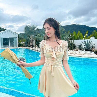 可愛い UVカット 海水浴 温泉 潜水 海ビーチ 水着 パッド付き 体型カバー ビキニセット ワンピース レディース ワンピース水着 韓国風
