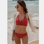 水着ビキニレディース2点セットビキニセットビーチホルターネックセクシー旅行用ワイヤーなしセパレートパッド付温泉着