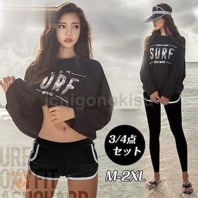 海水浴 レディース 40代 温泉 ビキニ セパレート 体型カバー ラッシュガード 紫外線対策 30 上下セット 3/4点 uvカット ママ水着 20 夏物 韓国 新作 水着