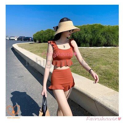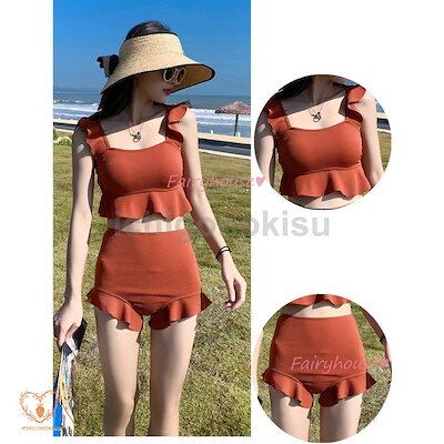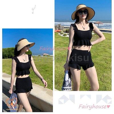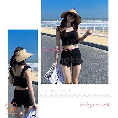 40代 黒フレア ビキニ水着レディース セパレート ショットパンツ 韓国風 小胸バンドゥビキニ ビキニ2点セット水着 水着 体型カバー ハイウエスト 夏