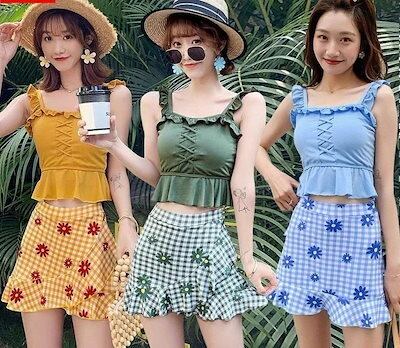 水着 泳衣 レディーススウィートスカートスタイルツーピース学生水着 体型カバー 日焼け防止 水着 泳衣ビキニ 韓国ファッション