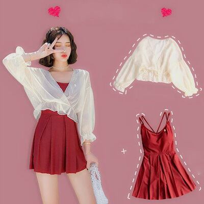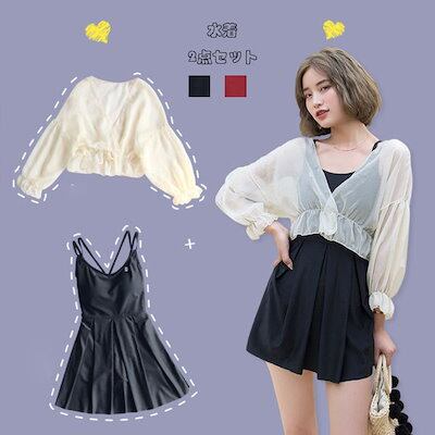 レディース 水着 ワンピース+日焼け防止服 2点セット セクシー 体型カバー 女性 スイムウェア 海