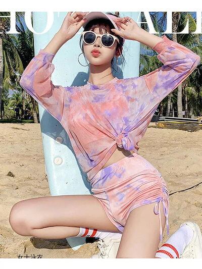 2つ買うと200円引き 晩春水着 紫外線対策 カット 韓国 大きい 長袖 レディース 着痩せ 25新作 水着アップ 体型カバー 水着 水着 日焼け防止 ラッド水着 ビキニ 三点