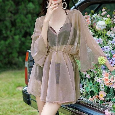 水着 レディース ビキニ シースルー ワンピース 3点セット おしゃれ かわいい セクシー 黒 無地 シンプル 透け感