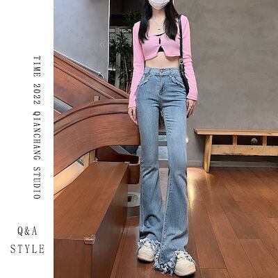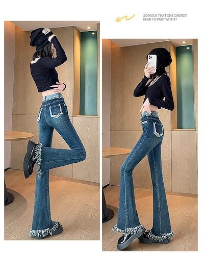 マイクロフレアジーンズレディース春秋2025年新作ハイウエストで細身のバリ肌に見せるストレッチ馬蹄フレアパンツ