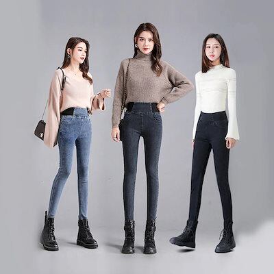 追加料金なしデニムパンツ レディース ボトムス 裏起毛 パンツ 暖パン スキニー ストレッチ レギパン 防寒 大人 あったか ウエストゴム 大きいサイズ
